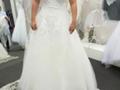 Beautiful corset fitted silhouette wedding dress with semi transparent undercuts covered with lace and sequins and decorated with appliques.On the...